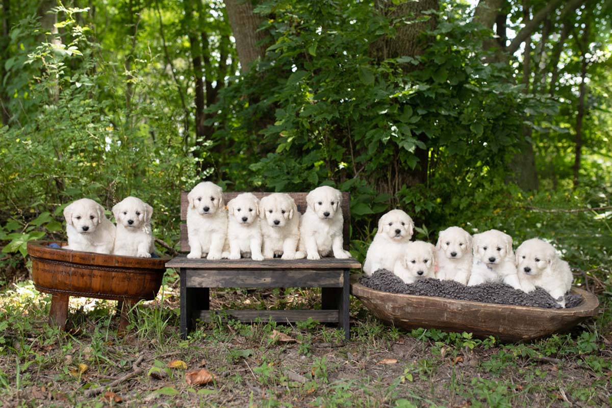 We are premier breeders of English Cream Goldendoodles also known as white goldendoodles or British type goldendoodles. We specialize in the miniature stature of goldendoodles using championed lines from both English Cream Golden Retrievers and long legged white Toy Poodles. When we researched our breed we discovered some important things. The health benefits of the English Cream Golden Retriever were superior to that of the American Golden Retriever. The intelligence of the poodle as well as the low to minimal shedding coat gave families with allergies an opportunity to welcome one of our fur babies into their homes. Lastly, the smaller size of the toy poodle produced a manageable size for all families. We decided to breed this combination to offer beautiful, healthy, mini goldendoodle puppies that give us the best of both worlds!