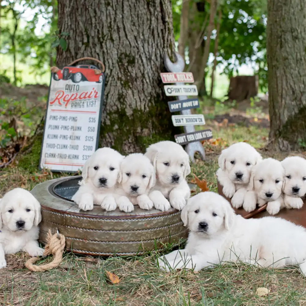 We are premier breeders of British type golden retrievers — sometimes referred to as English Cream Golden Retrievers or White Golden Retrievers. We fell in love with the Golden Retriever breed years ago when our family adopted an American-type Golden puppy. But, when our golden passed of cancer, we were devastated, and determined to find a puppy with better health. We started researching in 2011, adopted our first English Goldens a few months later, followed by our first litter born in 2012. Through the years, our priority has remained delivering beautiful, healthy puppies that you’ll absolutely love!